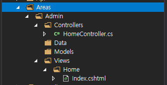 Admin Areas에서 사용할 HomeController를 추가했습니다.