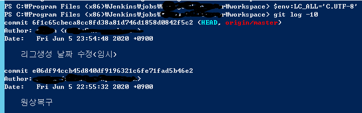 PowerShell 을 이용해서 Git 로그를 알아오기 위한 명령어를 실행 중, 한글이 깨지는 현상이 발견되었습니다.