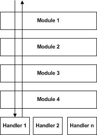 ASP.NET 요청 처리는 ASP.NET이 파이프 라인의 모든 모듈에 http 요청을 전달하는 파이프 라인 모델을 기반으로합니다. 각 모듈은 http 요청을 수신하고 이에 대한 모든 권한을 갖습니다. 모듈은 적합하다고 판단되는 방식으로 요청을 처리 할 수 있습니다. 요청이 모든 HTTP 모듈을 통과하면 결국 HTTP 처리기에 의해 처리됩니다. HTTP 처리기는 일부 처리를 수행하고 결과는 파이프 라인의 HTTP 모듈을 다시 통과합니다.
