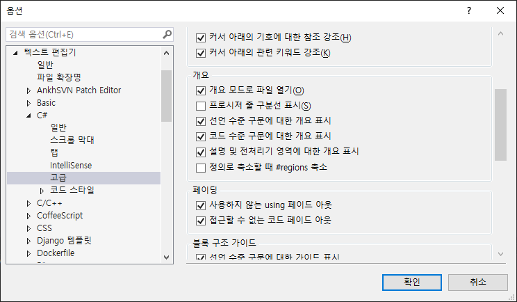 간혹 VS 재설치시 #regions 부분이 축소가 되지 않을 경우가 있습니다.