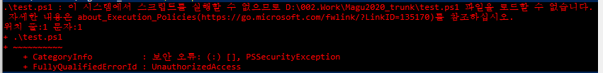 파워쉘을 사용하다 보면은, 아래와 같은 오류를 보시는 경우가 발생합니다.