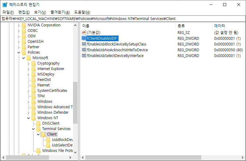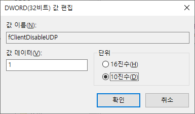 - 새 DWORD 이름을 fClientDisableUDP 로 지정