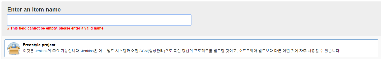 일반적인 프로젝트라면, Freestyle Project 메뉴를 선택 한 후 저장해주시면 됩니다.