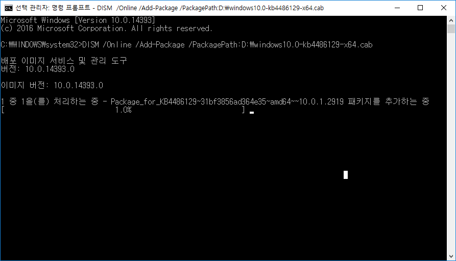 cab 파일을 더블클릭해서는 실행이 되지 않고, DISM.exe 라는 윈도우에 기본적으로 제공해주는 프로그램을 이용해서 설치하게 됩니다.