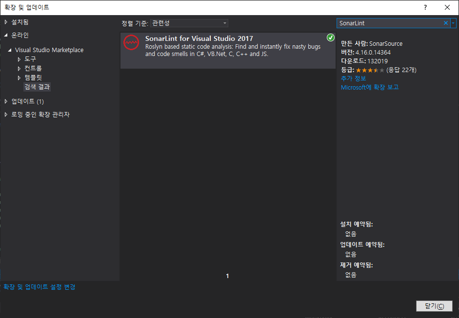 2.이후 나타나는 창에서 SonarLint 를 검색해 줍니다.