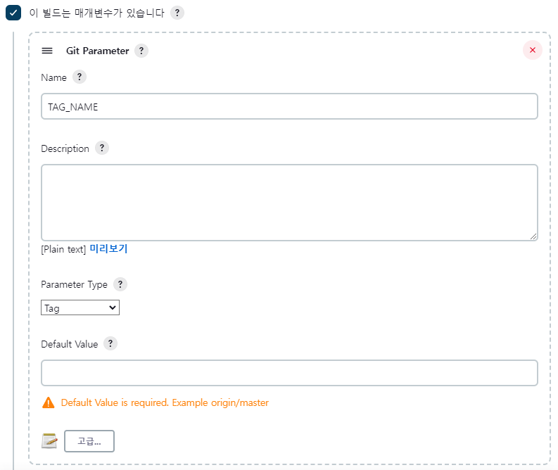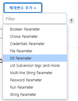 기본적으로 Git의 Parameter Type 을 이용하려면, Git Parameter 플러그 인 설치가 되어 있어야 합니다.