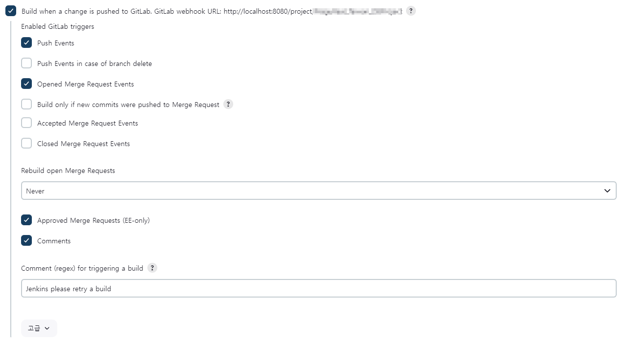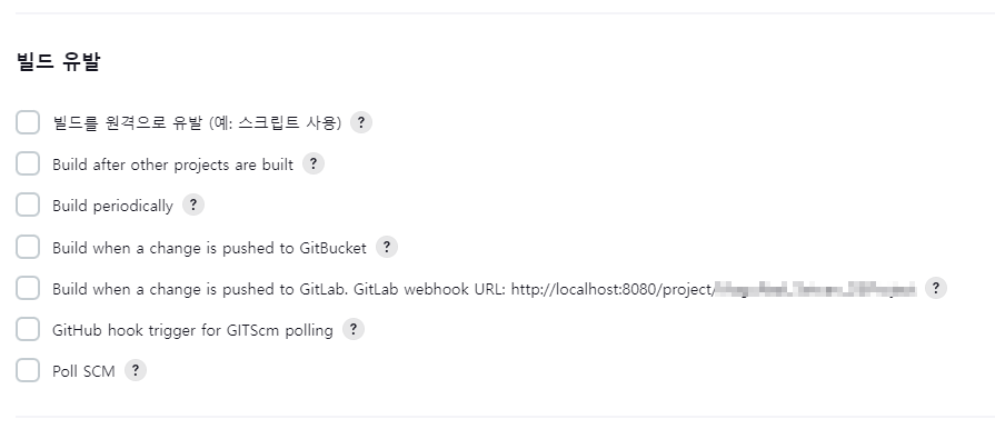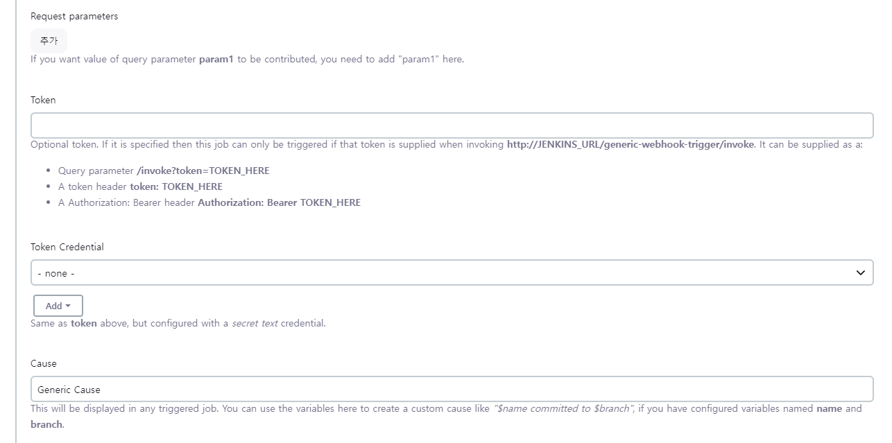 GitLab Plugin과는 다르게, 빌드유발 탭에서는 Generic Webhook Trigger 의 체크박스로 표현이 되고 있었습니다.