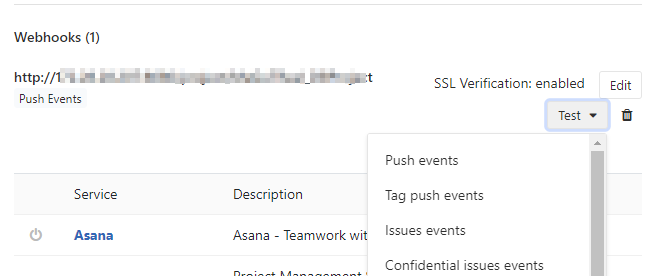 설정이 완료가 되었다면, Push Events 가 잘 발생이 되는지 테스트를 해 볼 수 있는데요.