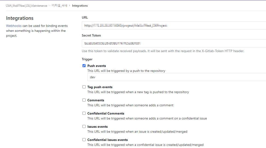 Gitlab의 Webhooks은 프로젝트 내에서 어떠한 일이 발생할 때, 이벤트를 바인딩 하는데 사용 할 수 있습니다.