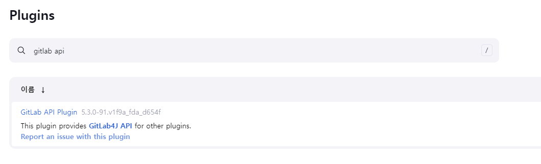 다른 GitLab API Plugin 이 검색이 되었습니다. 한참을 검색하였지만 찾지 못해서, 해당 Plugin을 설치 하였는데요.