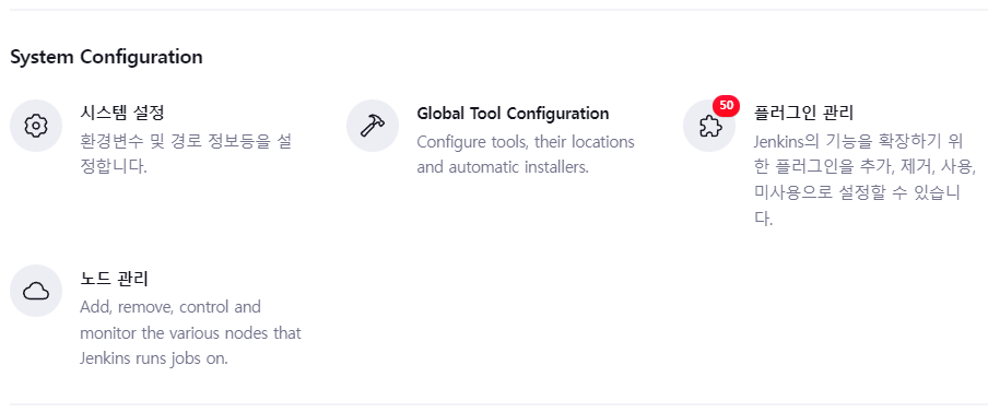 Jenkins의 버전 업그레이드는, 관리 메뉴에서 진행하면 손쉽게 진행할 수 있어서 넘어가도록 하겠습니다.