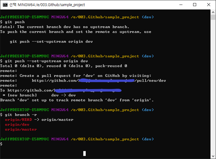 $ git push -u origin dev