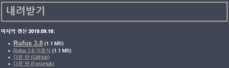 사이트에도 명시가 되어 있지만, USB 부팅디스크를 만드는 속도가 Rufus가 가장 빠른걸로 보여집니다.