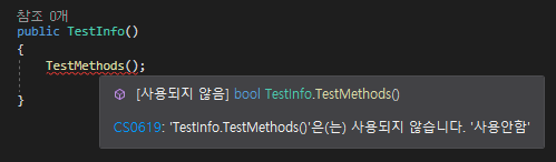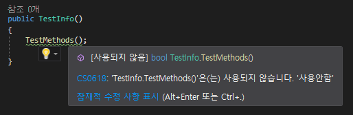 [C#] ObsoleteAttribute 특성을 사용하여, 사용안하는 메소드 표시