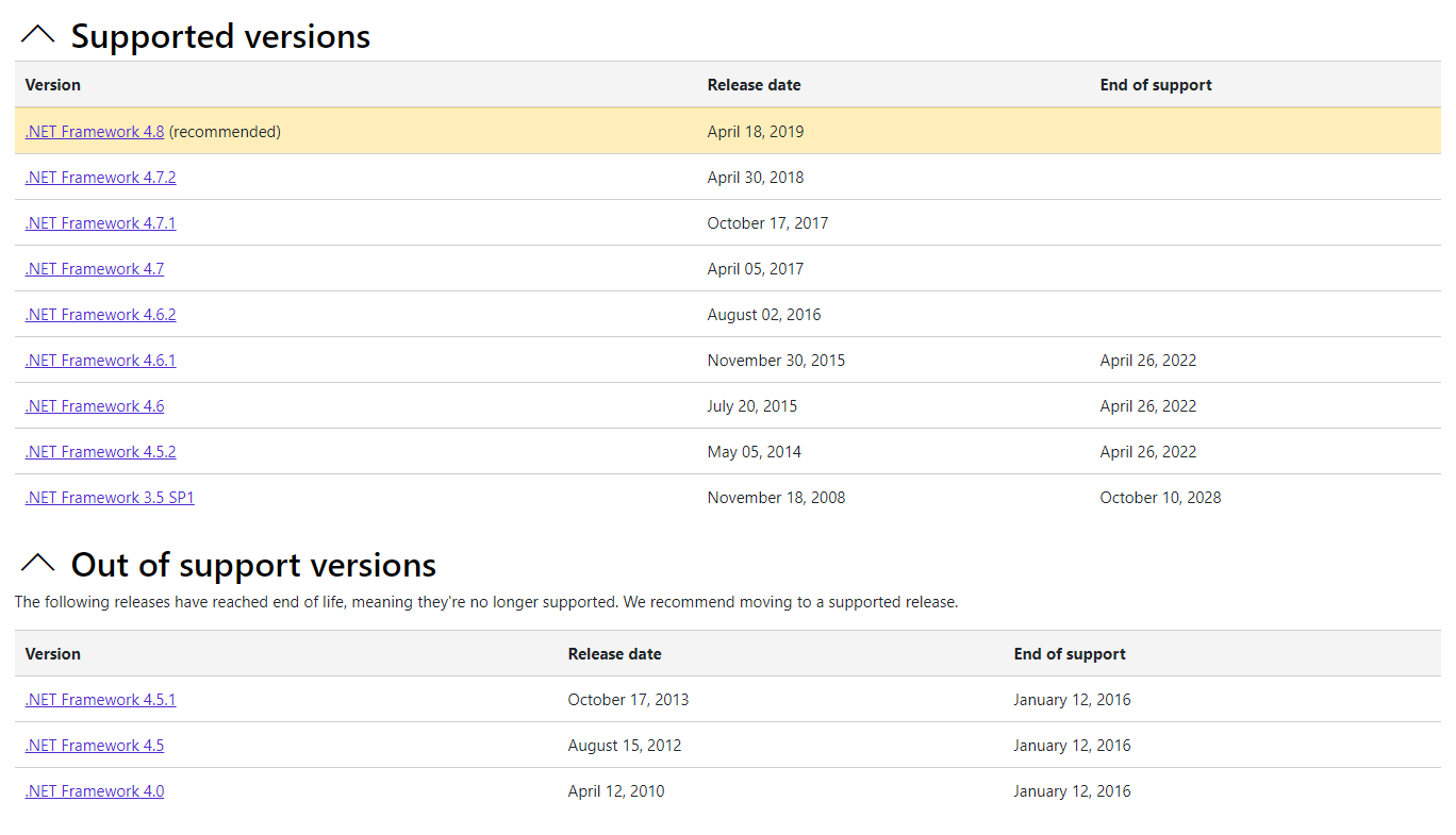 [.NET] .NET Framework 다운로드 링크2021.06.01