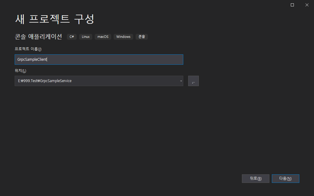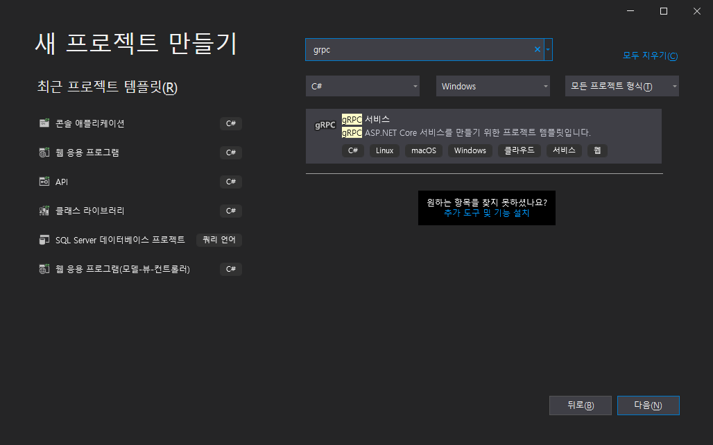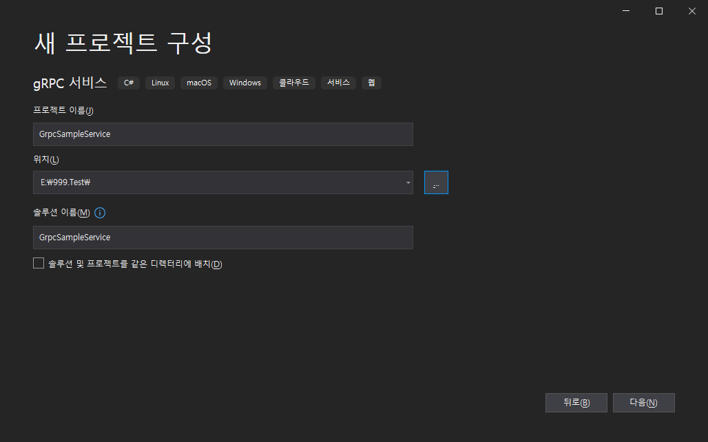 새로운 프로젝트를 만들때, gRPC 서비스 템플릿을 이용해서 프로젝트를 생성 할 수 있습니다.