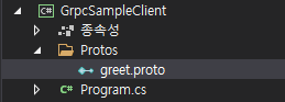 <Protobuf Include="Protos\greet.proto" GrpcServices="Client" />