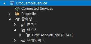 서버 프로젝트의 경우에는 Grpc.AspNetCore 패키지가 포함되어 있고, 해당 패키지 안에 Grpc.Tools 에 대한 참조가 포함되어 있어서, 별도로 추가 할 필요는 없습니다.